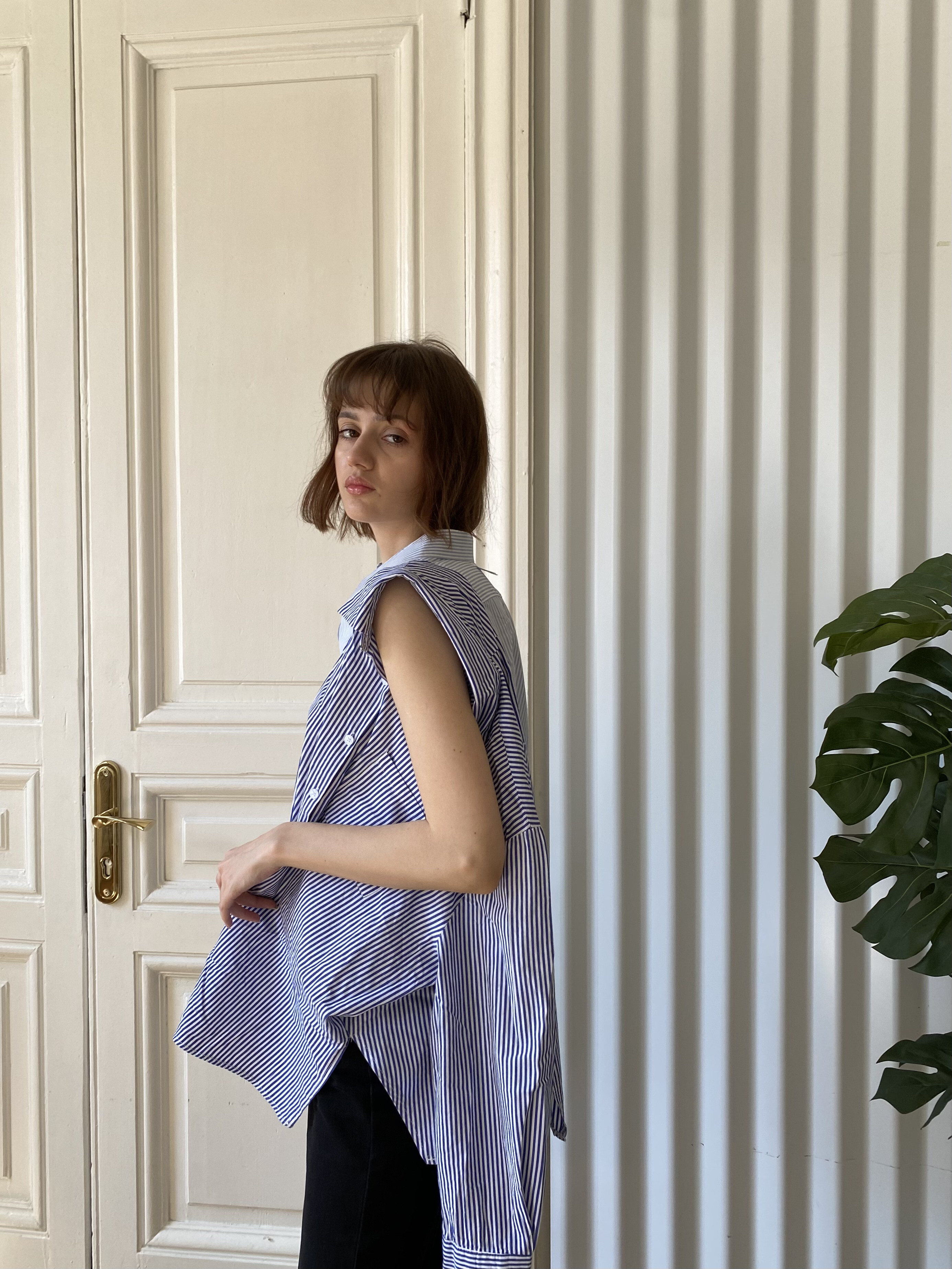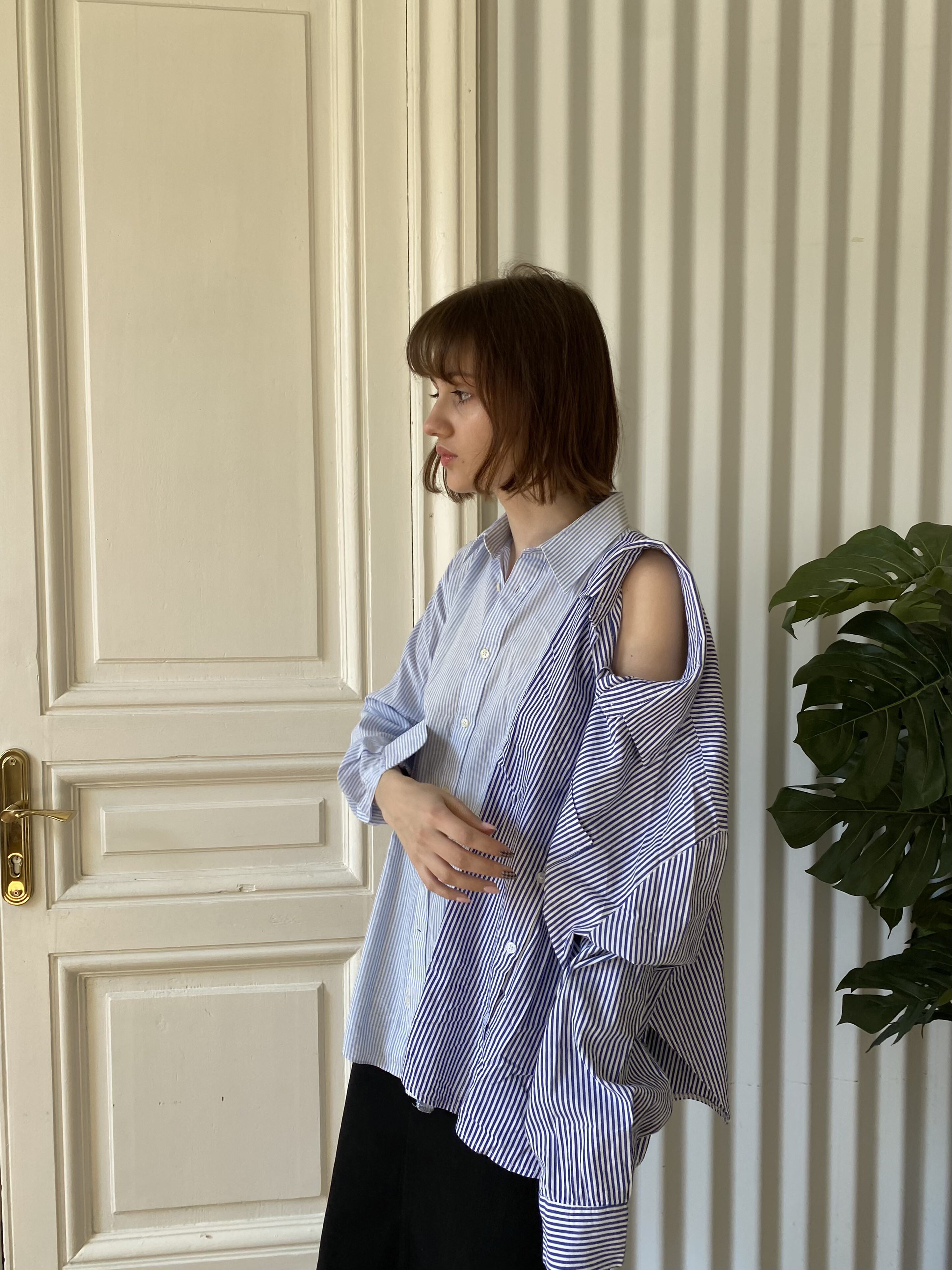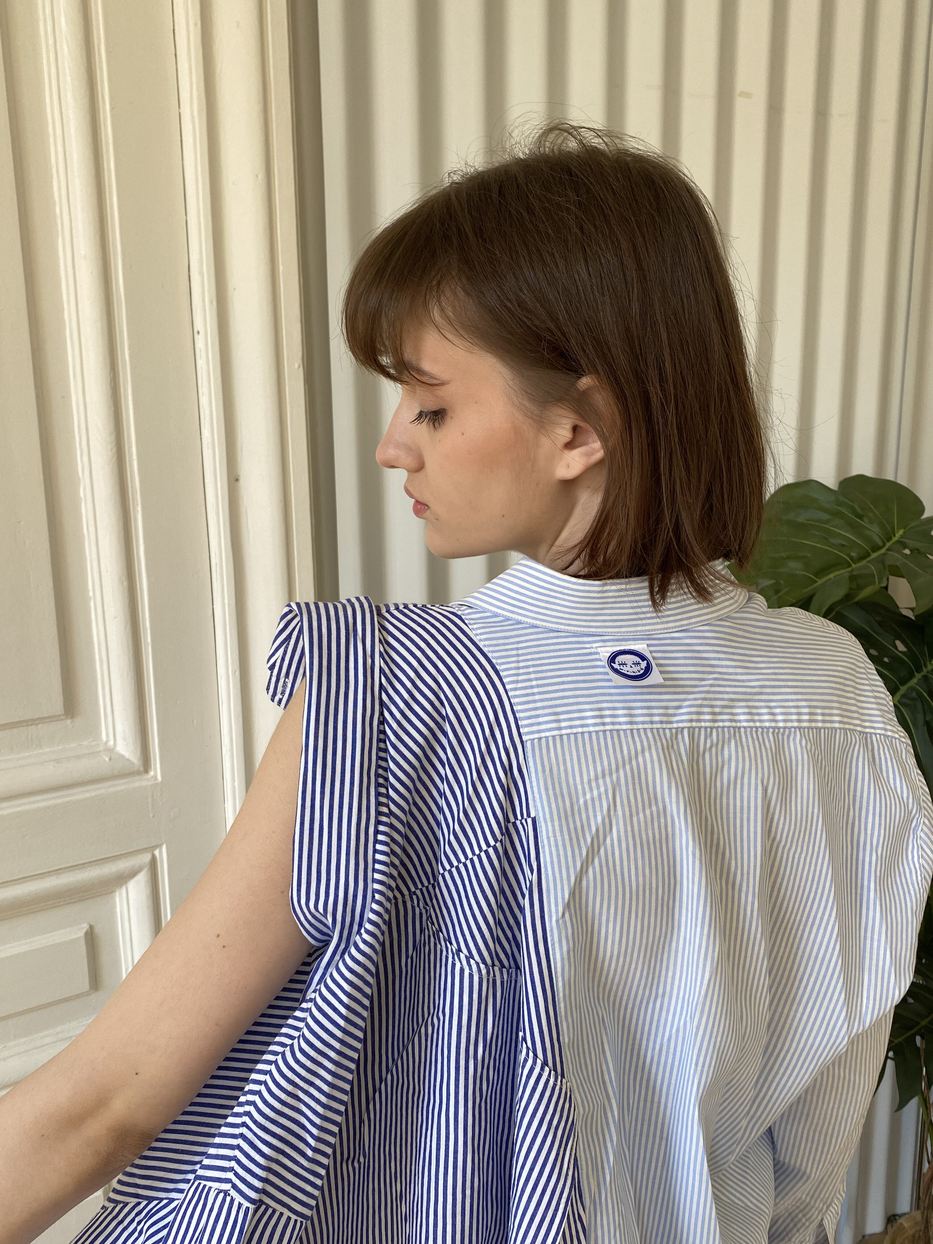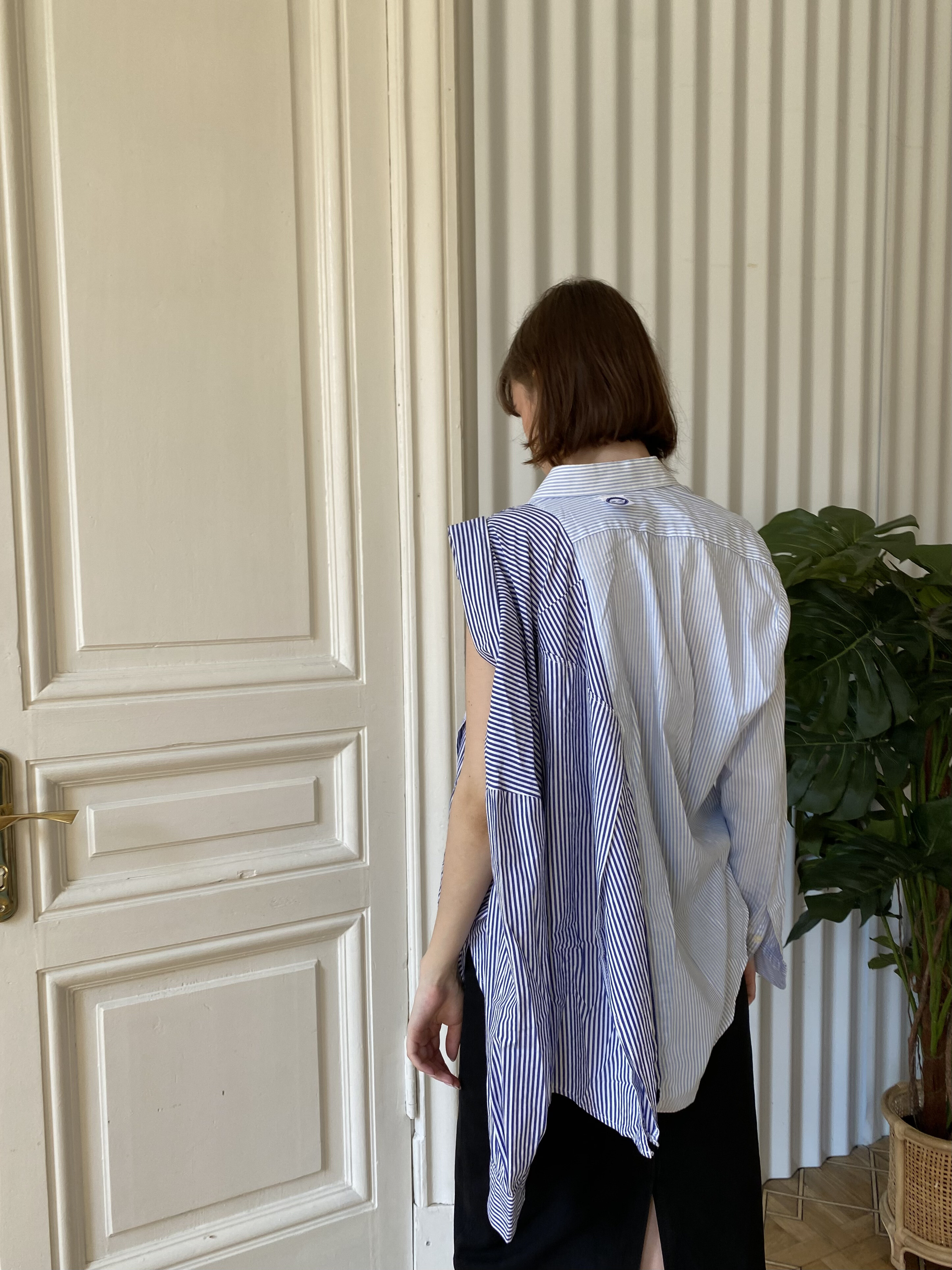 Двойная рубашка WRUSH состоит из 2-х частей и имеет разные варианты стилизации, можно надевать разными горловинами или использовать, как пройму. На спинке находится разрез и бирка.
