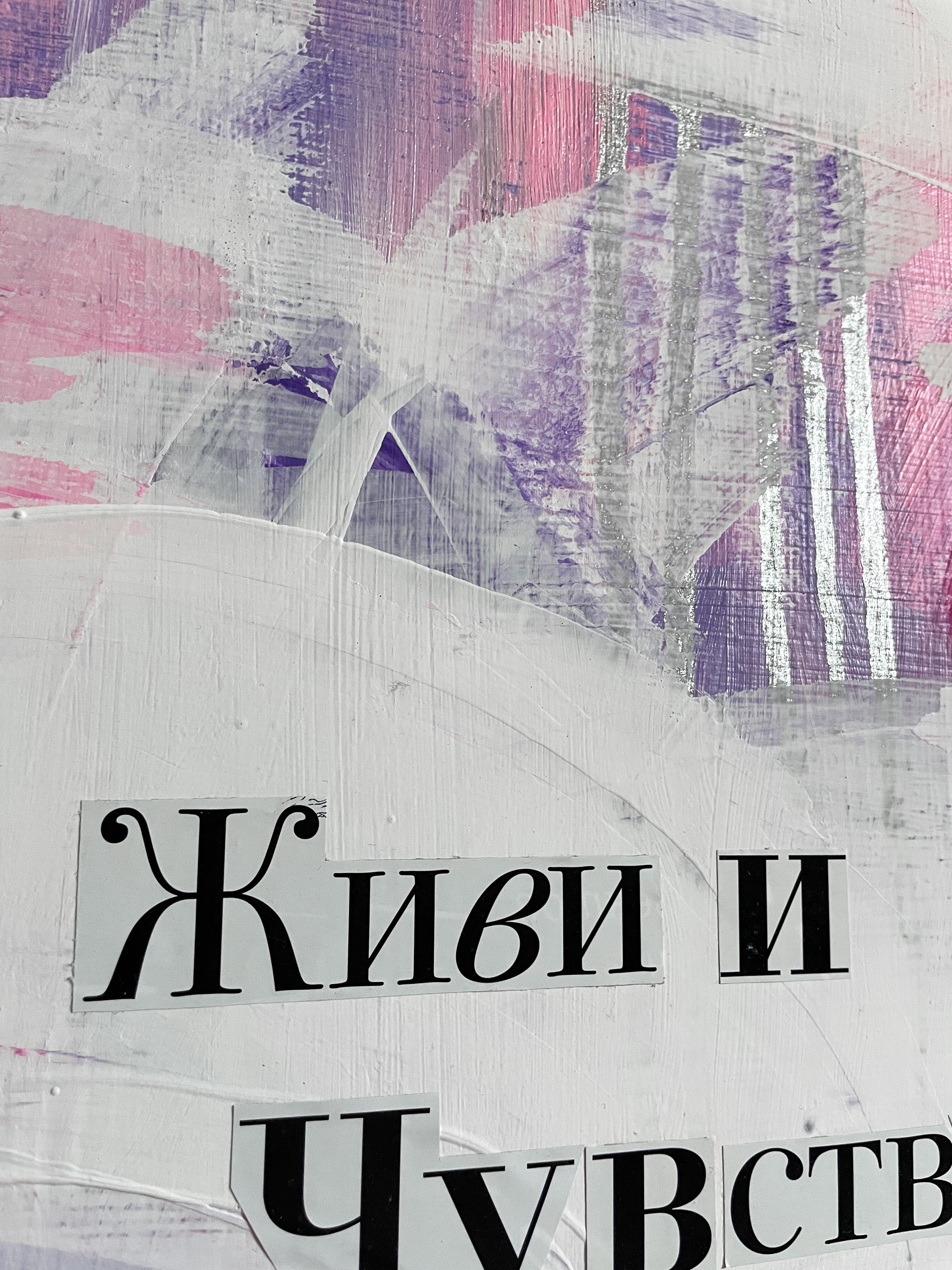 В своих картинах я сочетаю акриловую живопись и коллаж, это лучше помогает доносить до аудитории те смыслы, которые я вкладываю в работы. Я затрагиваю разные философские темы, терзания и сомнения души, размышления о современном мире и людях, ценностях истинных и навязанных. Во время творческого процесса я превращаю свои мысли и вопросы в материальный объект искусства, параллельно находя новые решения и ответы на волнующие меня темы. Для меня главное - открыть зрителям глубину привычных вещей, побудить к размышлениям, остановить постоянную гонку и достигаторство, вернуть к своему истинному Я.