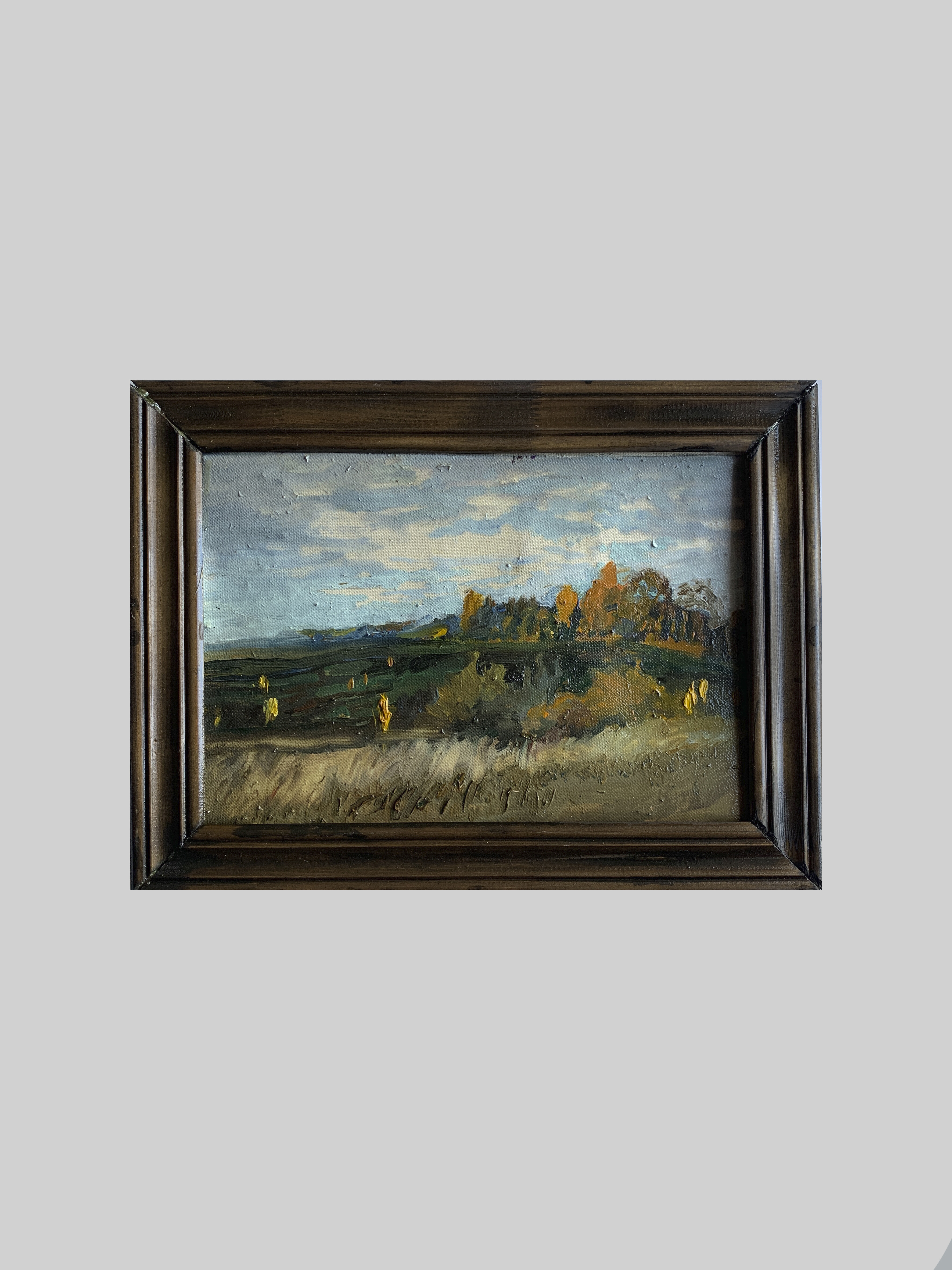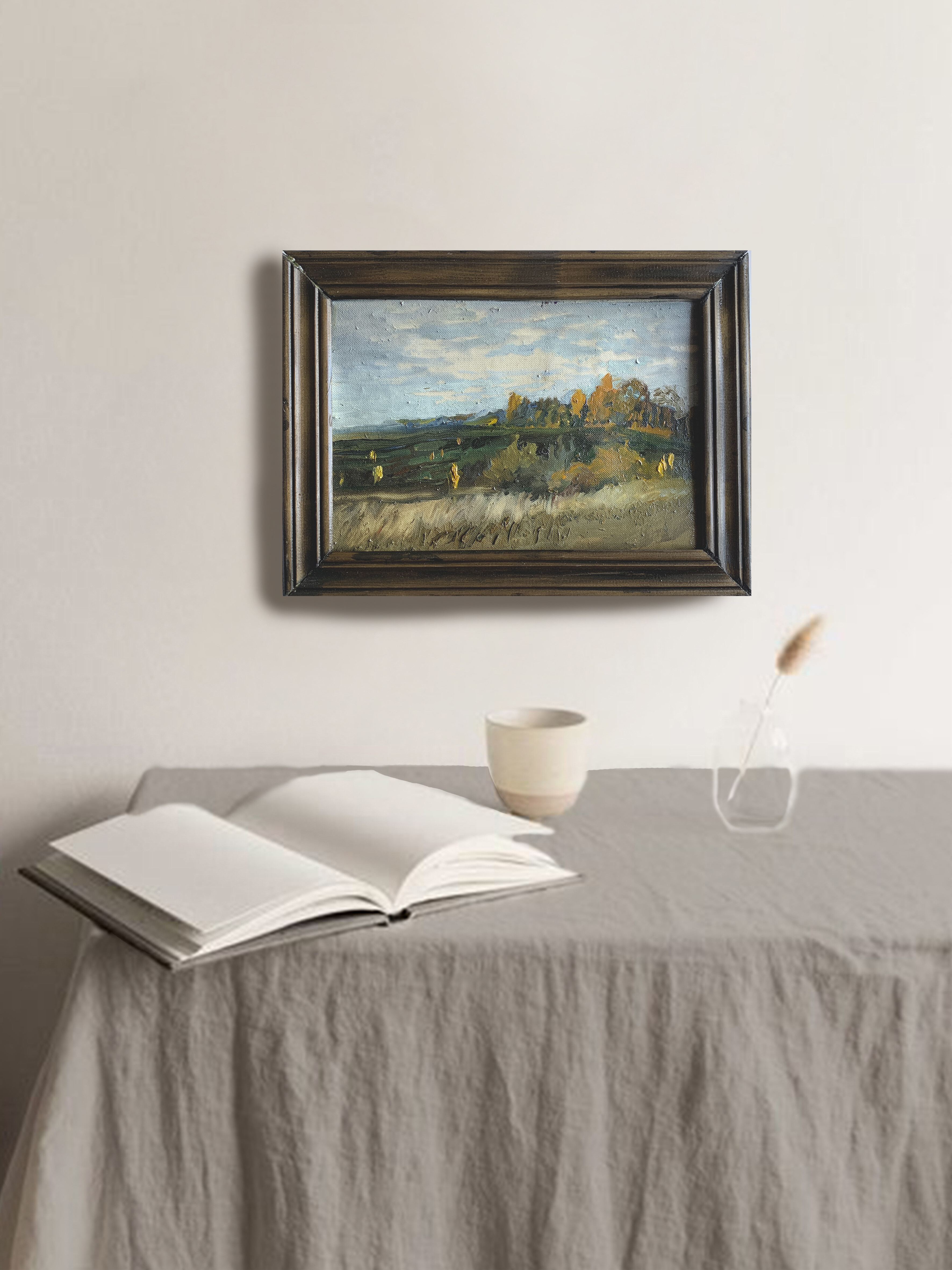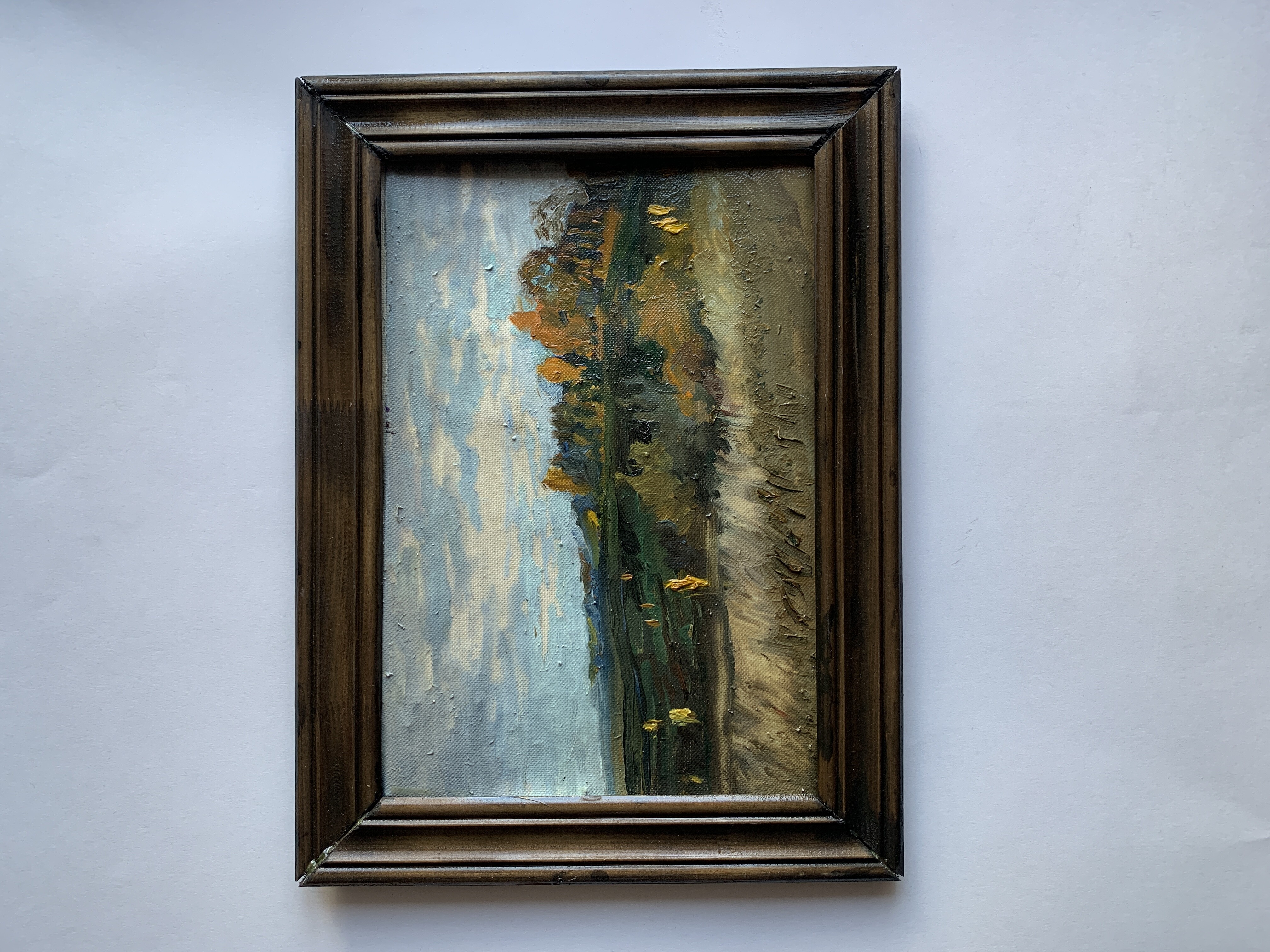 Этюд обработан покрывным лаком и оформлена в деревянную раму.