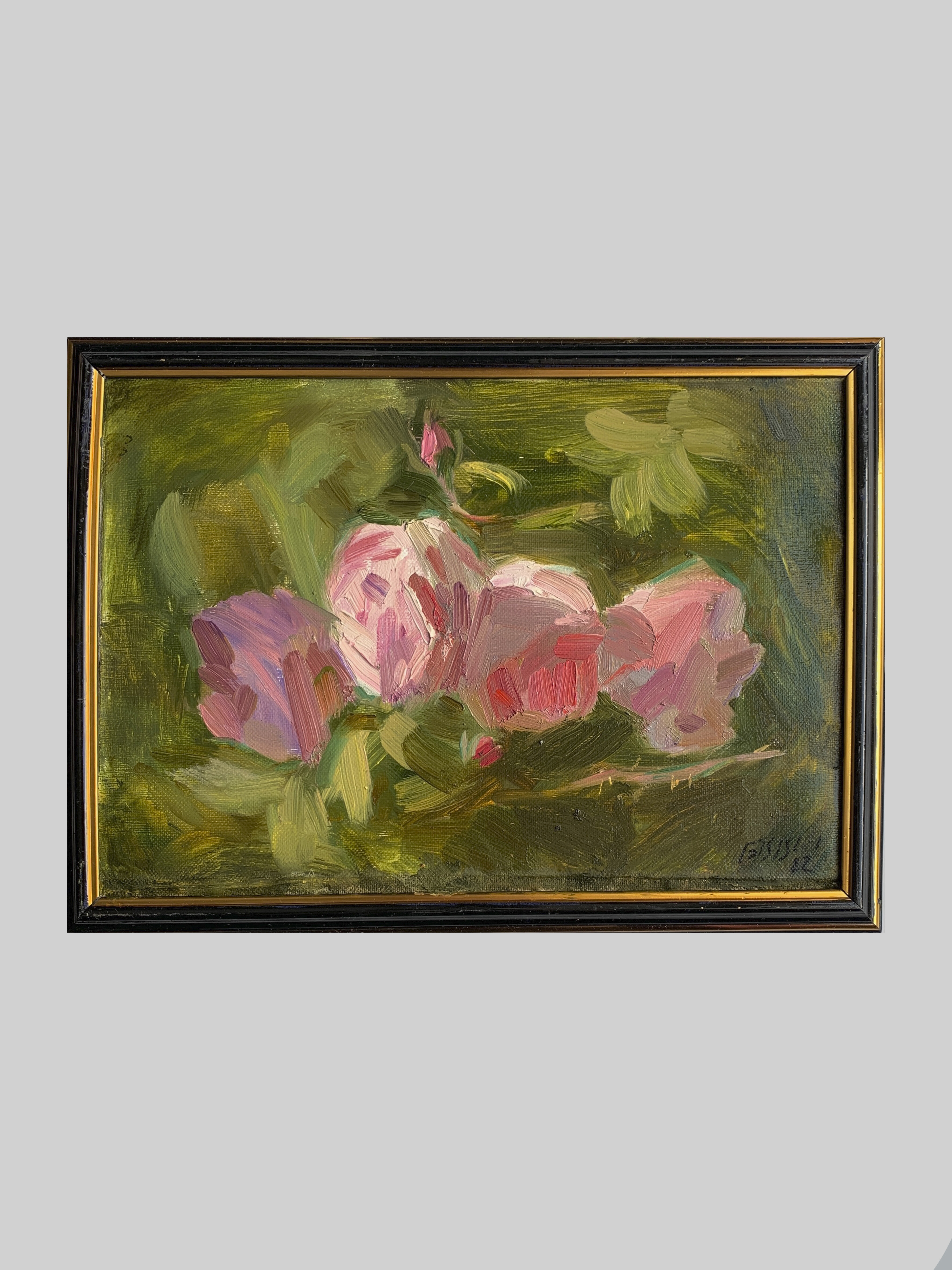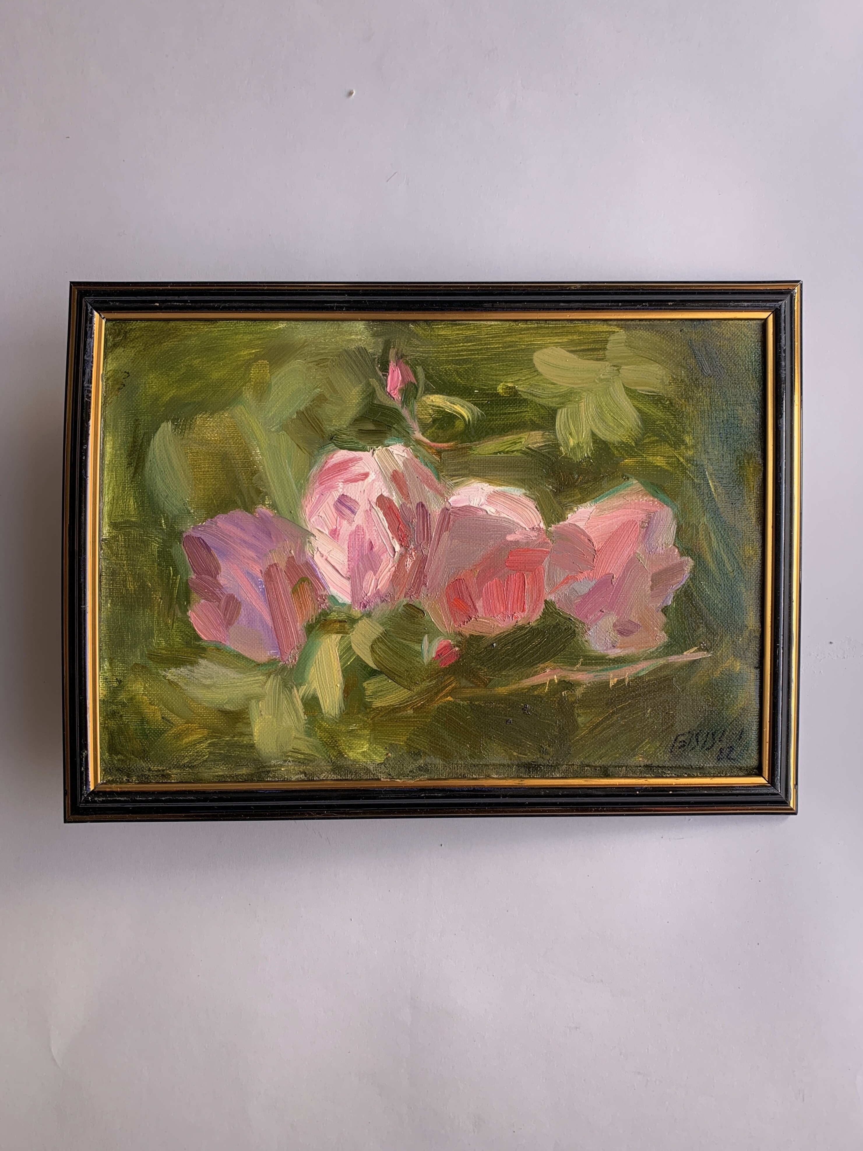 Работа обработана покрывным лаком и оформлена в крашеную деревянную раму.