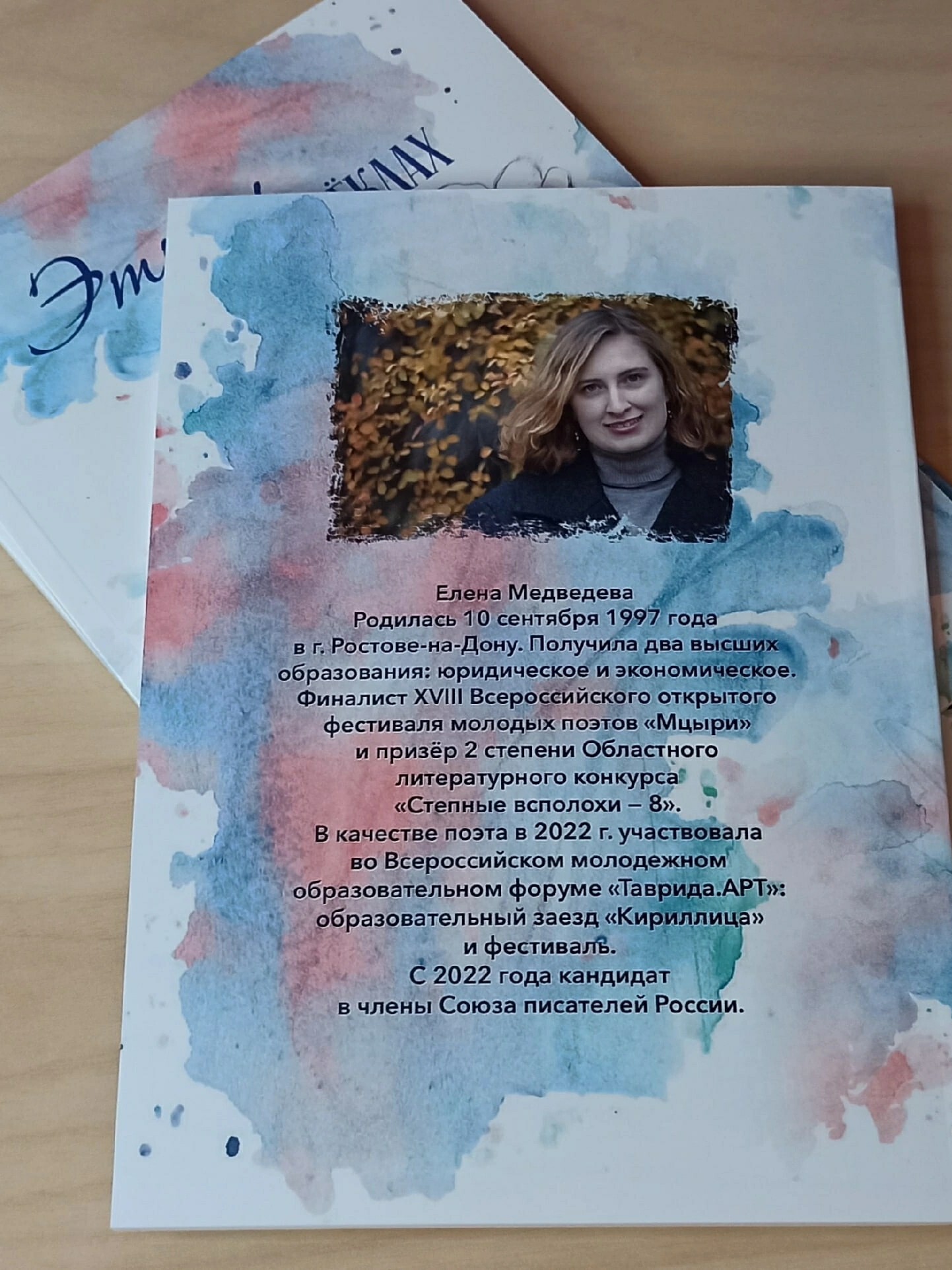 Елена Медведева - Член Союза писателей России, резидент проекта «Литературная гостиная». Участник образовательного заезда и фестиваля Таврида.АРТ 2022 г.