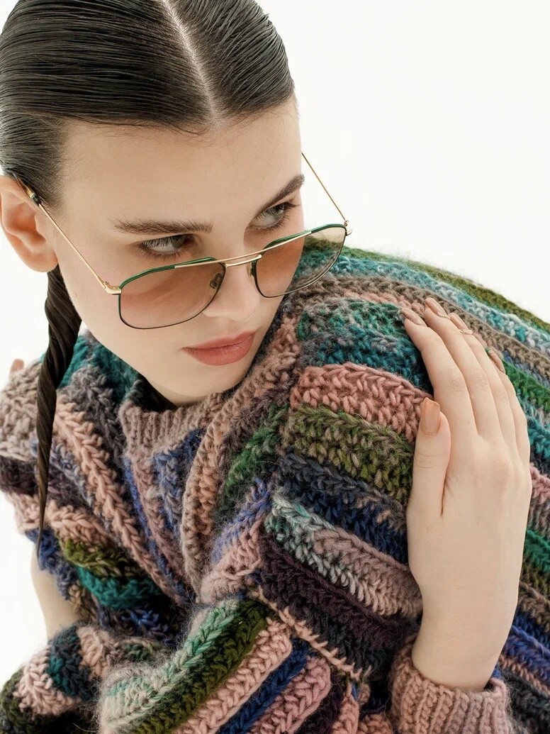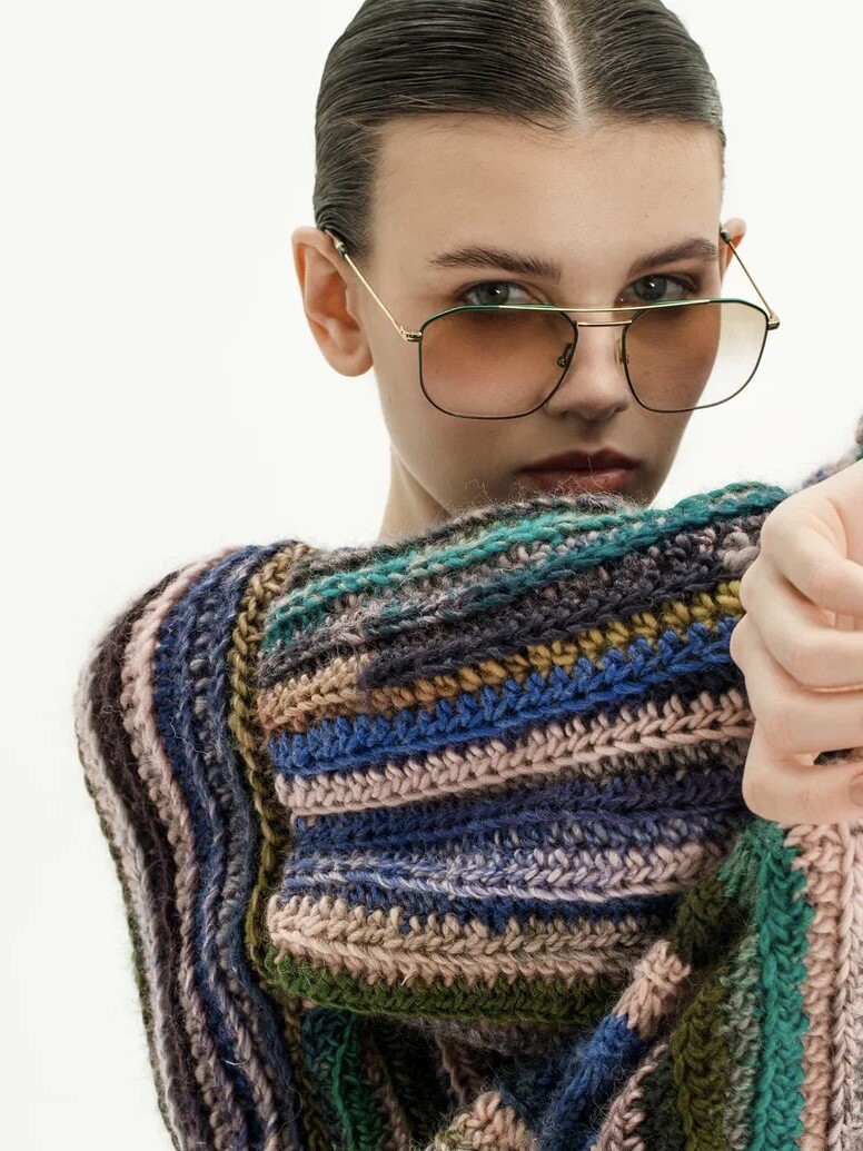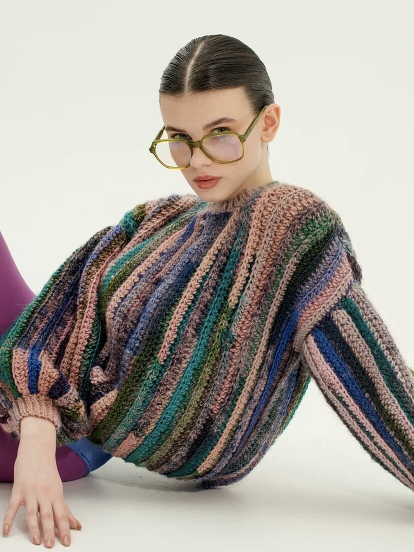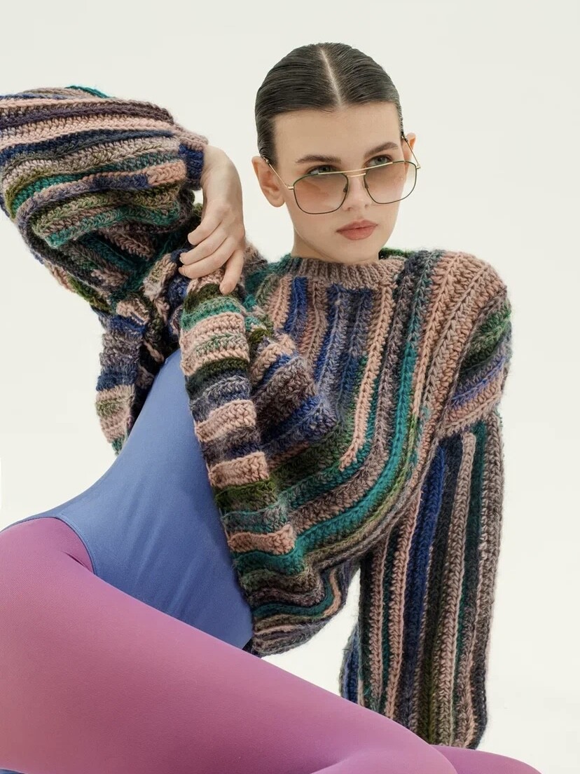 Свитер WRUSH разноцветный. Укороченный женский свитер с объемными рукавами.