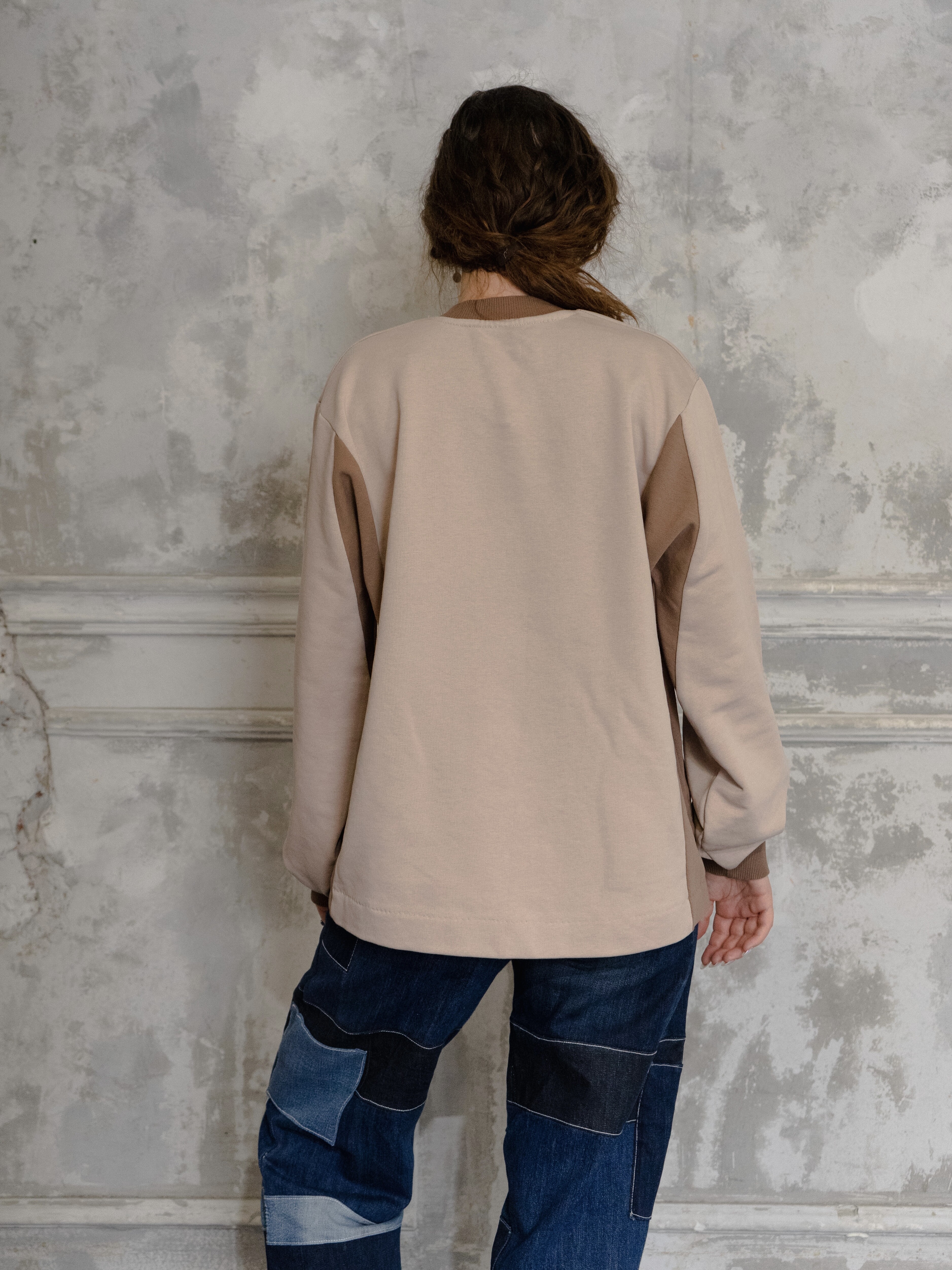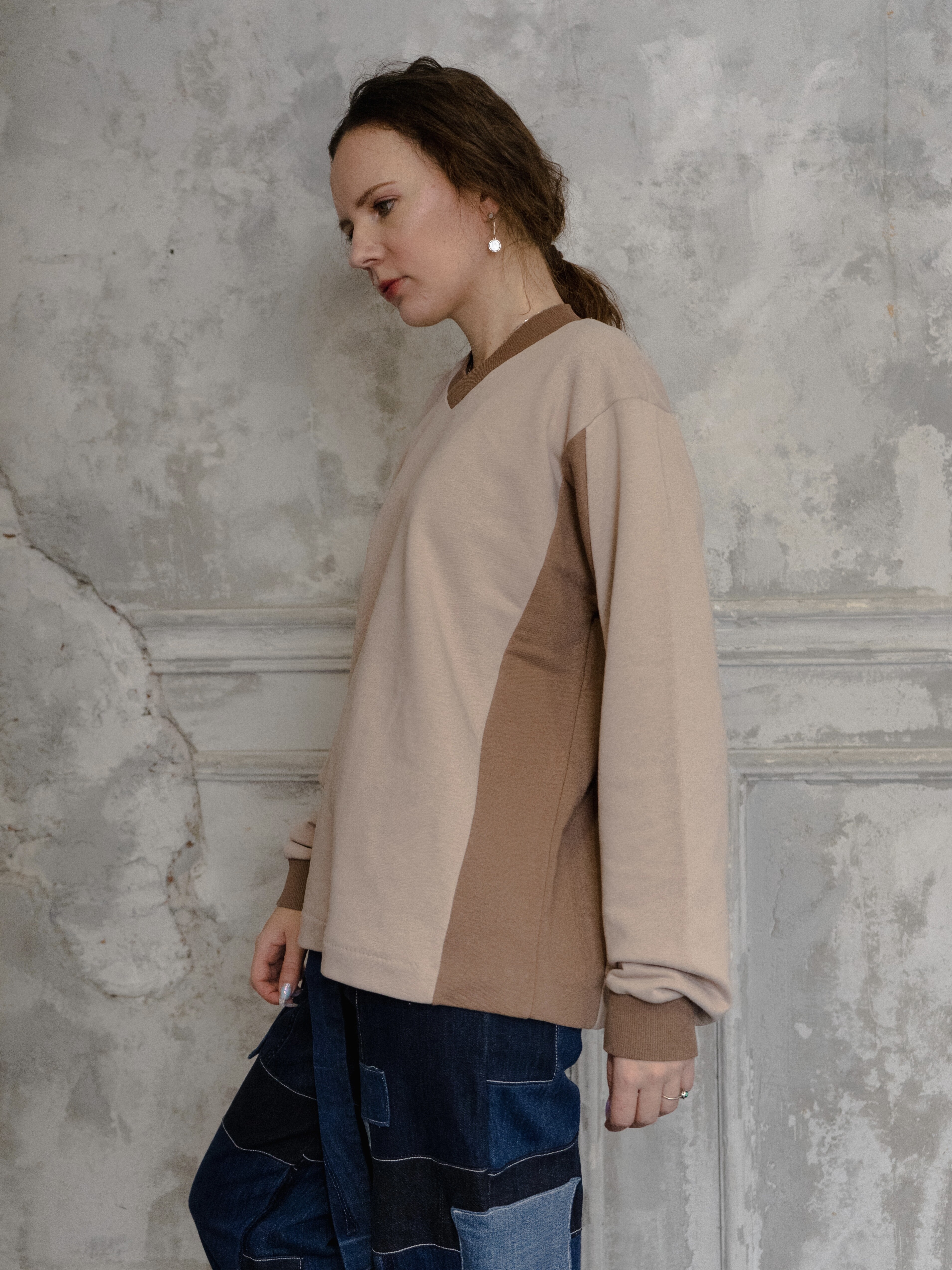 Главными изюминками модели являются v-образная горловина с воротником, образующим нахлест, которые отсылают к корейскому жакету чогори и его воротнику, а также контрастные бочки - гётмаги, часто встречающиеся у традиционных жакетов.